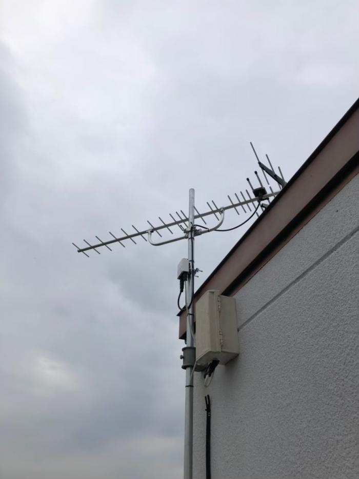 その昔、八木秀次博士が発明した形状(魚の骨のような形状)からマイナーチェンジを繰り返し洗練されたフォルムとなり、中・弱電界エリアにも対応可能な安心のDXアンテナ社製。UHF20素子アンテナの性能で、吹きさらしで障害物の少ない屋根上に設置することが多いため利得が高くなっております。万が一、壁面や屋内でデザインアンテナを取り付けられない物件 にも最適。従来の鉄製の太いワイヤーとは異なり、ステンレス製の丈夫で錆びにくいワイヤー(支線)を採用。アンテナマストから屋根の四隅に向けて4本の支線を張り巡らせ、さらに張り巡らせた支線の途中からも屋根馬に向けて4本の支線をバランスよく張り、合計8本の支線で頑丈に設置しております。サイズは51.8cm×34cm×101.4cmとなっており、VHF(アナログアンテナ)と比較して、大幅なサイズダウンと軽量化がなされています。しかも耐風速(破壊風速)50m/s。地デジ放送が始まる前の時代より、屋根上に設置するアンテナは災害に強くなっていると言えるでしょう。当店で人気ナンバー2の地デジアンテナでございます。