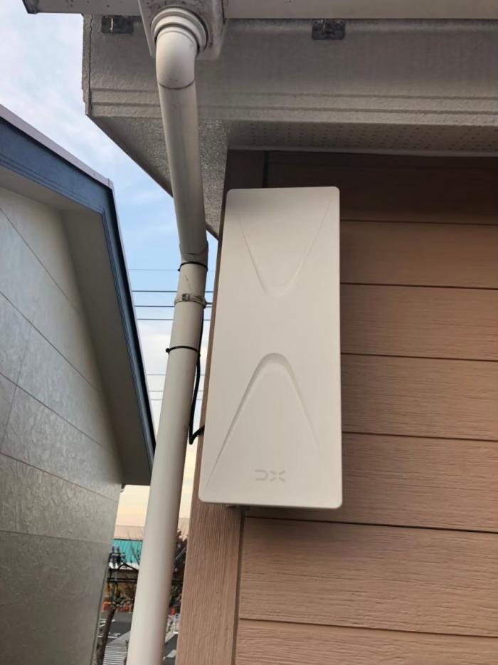 その昔、八木秀次博士が発明した形状(魚の骨のような形状)からマイナーチェンジを繰り返し洗練されたフォルムとなり、中・弱電界エリアにも対応可能な安心のDXアンテナ社製。UHF20素子アンテナの性能で、吹きさらしで障害物の少ない屋根上に設置することが多いため利得が高くなっております。万が一、壁面や屋内でデザインアンテナを取り付けられない物件 にも最適。従来の鉄製の太いワイヤーとは異なり、ステンレス製の丈夫で錆びにくいワイヤー(支線)を採用。アンテナマストから屋根の四隅に向けて4本の支線を張り巡らせ、さらに張り巡らせた支線の途中からも屋根馬に向けて4本の支線をバランスよく張り、合計8本の支線で頑丈に設置しております。サイズは51.8cm×34cm×101.4cmとなっており、VHF(アナログアンテナ)と比較して、大幅なサイズダウンと軽量化がなされています。しかも耐風速(破壊風速)50m/s。地デジ放送が始まる前の時代より、屋根上に設置するアンテナは災害に強くなっていると言えるでしょう。当店で人気ナンバー2の地デジアンテナでございます。