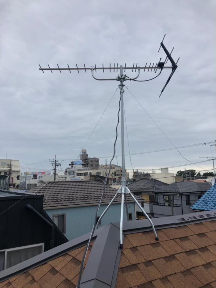 その昔、八木秀次博士が発明した形状(魚の骨のような形状)からマイナーチェンジを繰り返し洗練されたフォルムとなり、中・弱電界エリアにも対応可能な安心のDXアンテナ社製。UHF20素子アンテナの性能で、吹きさらしで障害物の少ない屋根上に設置することが多いため利得が高くなっております。万が一、壁面や屋内でデザインアンテナを取り付けられない物件 にも最適。従来の鉄製の太いワイヤーとは異なり、ステンレス製の丈夫で錆びにくいワイヤー(支線)を採用。アンテナマストから屋根の四隅に向けて4本の支線を張り巡らせ、さらに張り巡らせた支線の途中からも屋根馬に向けて4本の支線をバランスよく張り、合計8本の支線で頑丈に設置しております。サイズは51.8cm×34cm×101.4cmとなっており、VHF(アナログアンテナ)と比較して、大幅なサイズダウンと軽量化がなされています。しかも耐風速(破壊風速)50m/s。地デジ放送が始まる前の時代より、屋根上に設置するアンテナは災害に強くなっていると言えるでしょう。当店で人気ナンバー2の地デジアンテナでございます。