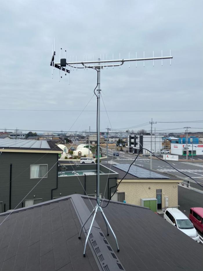 その昔、八木秀次博士が発明した形状(魚の骨のような形状)からマイナーチェンジを繰り返し洗練されたフォルムとなり、中・弱電界エリアにも対応可能な安心のDXアンテナ社製。UHF20素子アンテナの性能で、吹きさらしで障害物の少ない屋根上に設置することが多いため利得が高くなっております。万が一、壁面や屋内でデザインアンテナを取り付けられない物件 にも最適。従来の鉄製の太いワイヤーとは異なり、ステンレス製の丈夫で錆びにくいワイヤー(支線)を採用。アンテナマストから屋根の四隅に向けて4本の支線を張り巡らせ、さらに張り巡らせた支線の途中からも屋根馬に向けて4本の支線をバランスよく張り、合計8本の支線で頑丈に設置しております。サイズは51.8cm×34cm×101.4cmとなっており、VHF(アナログアンテナ)と比較して、大幅なサイズダウンと軽量化がなされています。しかも耐風速(破壊風速)50m/s。地デジ放送が始まる前の時代より、屋根上に設置するアンテナは災害に強くなっていると言えるでしょう。当店で人気ナンバー2の地デジアンテナでございます。