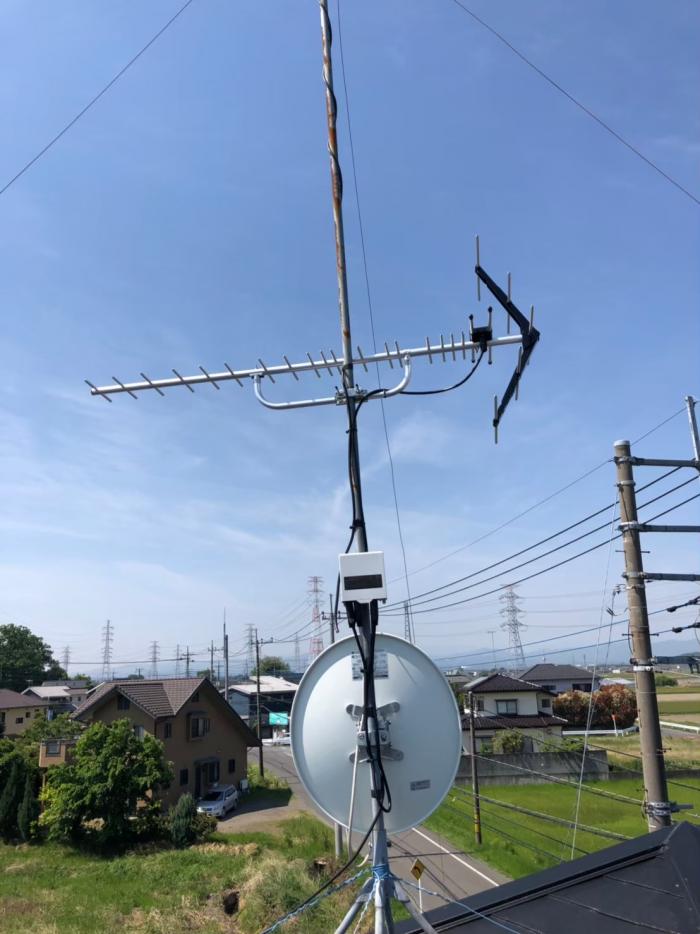その昔、八木秀次博士が発明した形状(魚の骨のような形状)からマイナーチェンジを繰り返し洗練されたフォルムとなり、中・弱電界エリアにも対応可能な安心のDXアンテナ社製。UHF20素子アンテナの性能で、吹きさらしで障害物の少ない屋根上に設置することが多いため利得が高くなっております。万が一、壁面や屋内でデザインアンテナを取り付けられない物件 にも最適。従来の鉄製の太いワイヤーとは異なり、ステンレス製の丈夫で錆びにくいワイヤー(支線)を採用。アンテナマストから屋根の四隅に向けて4本の支線を張り巡らせ、さらに張り巡らせた支線の途中からも屋根馬に向けて4本の支線をバランスよく張り、合計8本の支線で頑丈に設置しております。サイズは51.8cm×34cm×101.4cmとなっており、VHF(アナログアンテナ)と比較して、大幅なサイズダウンと軽量化がなされています。しかも耐風速(破壊風速)50m/s。地デジ放送が始まる前の時代より、屋根上に設置するアンテナは災害に強くなっていると言えるでしょう。当店で人気ナンバー2の地デジアンテナでございます。