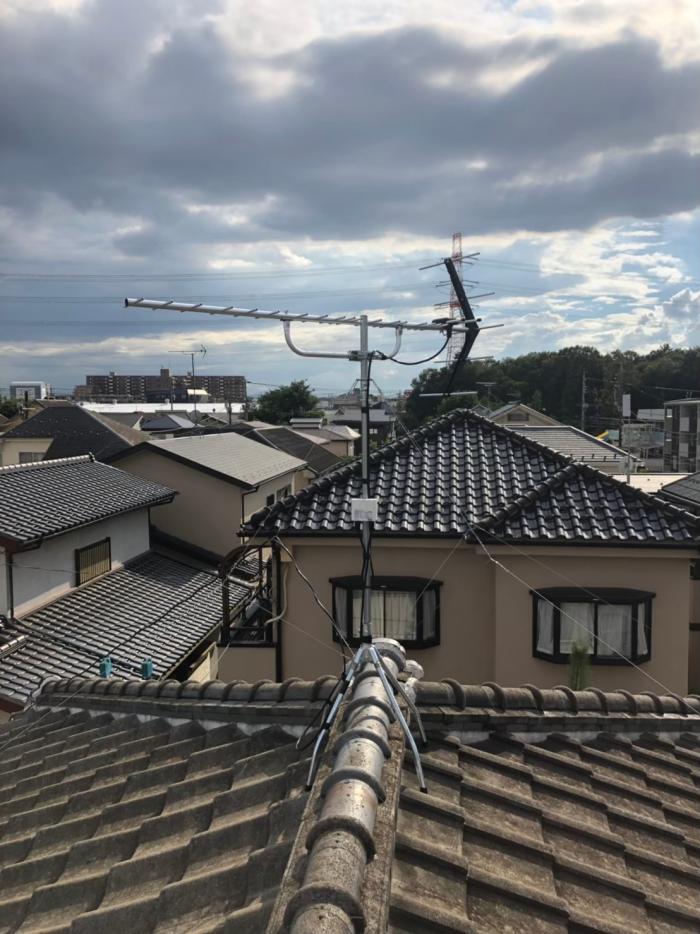 その昔、八木秀次博士が発明した形状(魚の骨のような形状)からマイナーチェンジを繰り返し洗練されたフォルムとなり、中・弱電界エリアにも対応可能な安心のDXアンテナ社製。UHF20素子アンテナの性能で、吹きさらしで障害物の少ない屋根上に設置することが多いため利得が高くなっております。万が一、壁面や屋内でデザインアンテナを取り付けられない物件 にも最適。従来の鉄製の太いワイヤーとは異なり、ステンレス製の丈夫で錆びにくいワイヤー(支線)を採用。アンテナマストから屋根の四隅に向けて4本の支線を張り巡らせ、さらに張り巡らせた支線の途中からも屋根馬に向けて4本の支線をバランスよく張り、合計8本の支線で頑丈に設置しております。サイズは51.8cm×34cm×101.4cmとなっており、VHF(アナログアンテナ)と比較して、大幅なサイズダウンと軽量化がなされています。しかも耐風速(破壊風速)50m/s。地デジ放送が始まる前の時代より、屋根上に設置するアンテナは災害に強くなっていると言えるでしょう。当店で人気ナンバー2の地デジアンテナでございます。