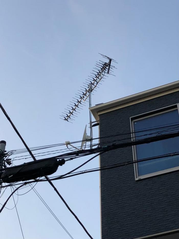 その昔、八木秀次博士が発明した形状(魚の骨のような形状)からマイナーチェンジを繰り返し洗練されたフォルムとなり、中・弱電界エリアにも対応可能な安心のDXアンテナ社製。UHF20素子アンテナの性能で、吹きさらしで障害物の少ない屋根上に設置することが多いため利得が高くなっております。万が一、壁面や屋内でデザインアンテナを取り付けられない物件 にも最適。従来の鉄製の太いワイヤーとは異なり、ステンレス製の丈夫で錆びにくいワイヤー(支線)を採用。アンテナマストから屋根の四隅に向けて4本の支線を張り巡らせ、さらに張り巡らせた支線の途中からも屋根馬に向けて4本の支線をバランスよく張り、合計8本の支線で頑丈に設置しております。サイズは51.8cm×34cm×101.4cmとなっており、VHF(アナログアンテナ)と比較して、大幅なサイズダウンと軽量化がなされています。しかも耐風速(破壊風速)50m/s。地デジ放送が始まる前の時代より、屋根上に設置するアンテナは災害に強くなっていると言えるでしょう。当店で人気ナンバー2の地デジアンテナでございます。