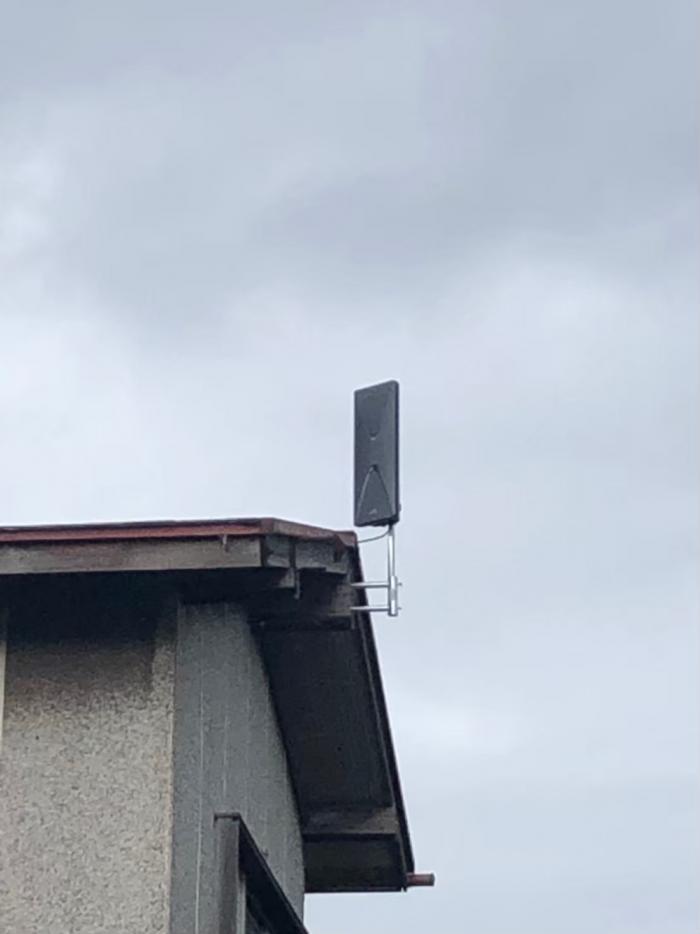 その昔、八木秀次博士が発明した形状(魚の骨のような形状)からマイナーチェンジを繰り返し洗練されたフォルムとなり、中・弱電界エリアにも対応可能な安心のDXアンテナ社製。UHF20素子アンテナの性能で、吹きさらしで障害物の少ない屋根上に設置することが多いため利得が高くなっております。万が一、壁面や屋内でデザインアンテナを取り付けられない物件 にも最適。従来の鉄製の太いワイヤーとは異なり、ステンレス製の丈夫で錆びにくいワイヤー(支線)を採用。アンテナマストから屋根の四隅に向けて4本の支線を張り巡らせ、さらに張り巡らせた支線の途中からも屋根馬に向けて4本の支線をバランスよく張り、合計8本の支線で頑丈に設置しております。サイズは51.8cm×34cm×101.4cmとなっており、VHF(アナログアンテナ)と比較して、大幅なサイズダウンと軽量化がなされています。しかも耐風速(破壊風速)50m/s。地デジ放送が始まる前の時代より、屋根上に設置するアンテナは災害に強くなっていると言えるでしょう。当店で人気ナンバー2の地デジアンテナでございます。