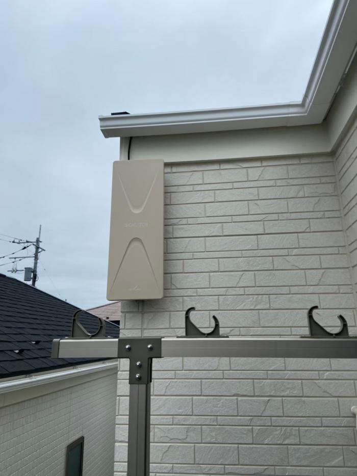 カラーバリエーションはオフホワイトライトブラウンスーパーブラックブラックブラウンの4色から現場で選択することが可能です。同じUHF20素子相当のデザインアンテナを比較した場合、業界トップクラスの受信性能、高利得を誇る大手DXアンテナ社製。本体の厚みはわずか119mm、サイズは高さ590mm×幅220mmで業界最小クラス。コンパクトサイズのため狭い屋根裏や天井裏などへの取り付けも最適。壁面に取り付けの場合は、極細のビスを6箇所打ち込んで金具を取り付け、金具にガチャンと本体をはめ込みボルトを締めるだけの簡単施工が可能なため建物へのダメージを極力軽減できます。ブースターが必要な場合はUAH201の背面にスッキリ取り付けられる構造になっており、表にブースターが露出しないので外観もキレイに保てます(弊社では電波状況が悪くない限り、なるべくブースターも屋内の、分配器の近くに隠してしております)。修理の場合、ブースター内蔵タイプのデザインアンテナとは異なり、ブースターだけの交換をできるメリットがあります。太陽光発電システムや片流れ屋根で屋根上に屋根馬を立てられず昔ながらの八木アンテナを設置できない住宅にも最適。耐風速(破戒風速)50m/sですが、屋内や外壁など、強風の影響を受けにくい取り付け位置と形状をしているため、災害にも強いアンテナとなっております。当店人気ナンバー1の地デジアンテナでございます。