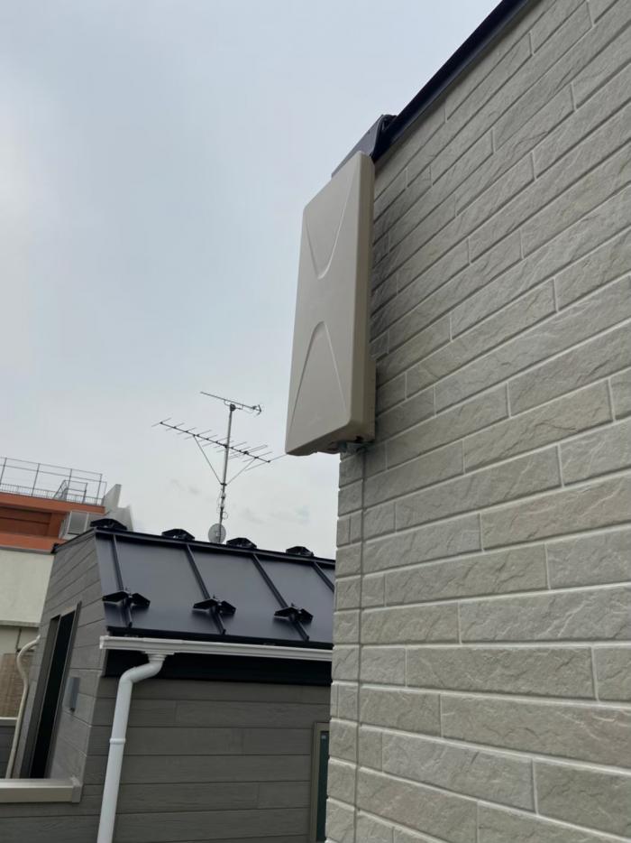 カラーバリエーションはオフホワイトライトブラウンスーパーブラックブラックブラウンの4色から現場で選択することが可能です。同じUHF20素子相当のデザインアンテナを比較した場合、業界トップクラスの受信性能、高利得を誇る大手DXアンテナ社製。本体の厚みはわずか119mm、サイズは高さ590mm×幅220mmで業界最小クラス。コンパクトサイズのため狭い屋根裏や天井裏などへの取り付けも最適。壁面に取り付けの場合は、極細のビスを6箇所打ち込んで金具を取り付け、金具にガチャンと本体をはめ込みボルトを締めるだけの簡単施工が可能なため建物へのダメージを極力軽減できます。ブースターが必要な場合はUAH201の背面にスッキリ取り付けられる構造になっており、表にブースターが露出しないので外観もキレイに保てます(弊社では電波状況が悪くない限り、なるべくブースターも屋内の、分配器の近くに隠してしております)。修理の場合、ブースター内蔵タイプのデザインアンテナとは異なり、ブースターだけの交換をできるメリットがあります。太陽光発電システムや片流れ屋根で屋根上に屋根馬を立てられず昔ながらの八木アンテナを設置できない住宅にも最適。耐風速(破戒風速)50m/sですが、屋内や外壁など、強風の影響を受けにくい取り付け位置と形状をしているため、災害にも強いアンテナとなっております。当店人気ナンバー1の地デジアンテナでございます。