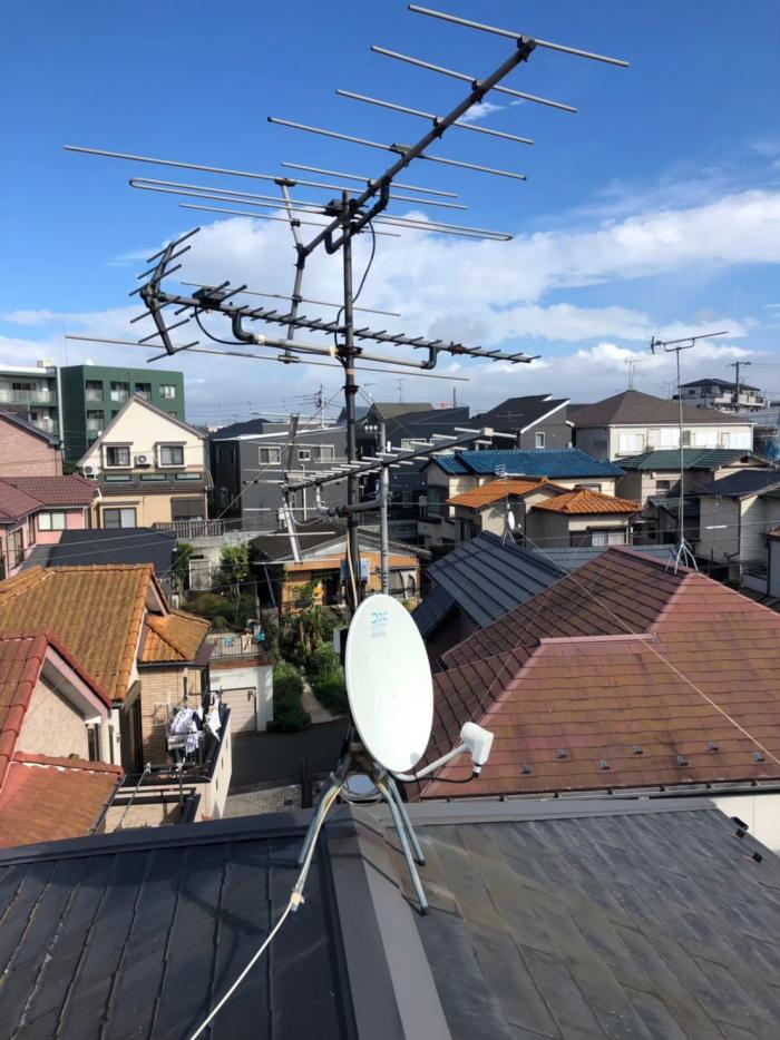 その昔、八木秀次博士が発明した形状(魚の骨のような形状)からマイナーチェンジを繰り返し洗練されたフォルムとなり、中・弱電界エリアにも対応可能な安心のDXアンテナ社製。UHF20素子アンテナの性能で、吹きさらしで障害物の少ない屋根上に設置することが多いため利得が高くなっております。万が一、壁面や屋内でデザインアンテナを取り付けられない物件 にも最適。従来の鉄製の太いワイヤーとは異なり、ステンレス製の丈夫で錆びにくいワイヤー(支線)を採用。アンテナマストから屋根の四隅に向けて4本の支線を張り巡らせ、さらに張り巡らせた支線の途中からも屋根馬に向けて4本の支線をバランスよく張り、合計8本の支線で頑丈に設置しております。サイズは51.8cm×34cm×101.4cmとなっており、VHF(アナログアンテナ)と比較して、大幅なサイズダウンと軽量化がなされています。しかも耐風速(破壊風速)50m/s。地デジ放送が始まる前の時代より、屋根上に設置するアンテナは災害に強くなっていると言えるでしょう。当店で人気ナンバー2の地デジアンテナでございます。