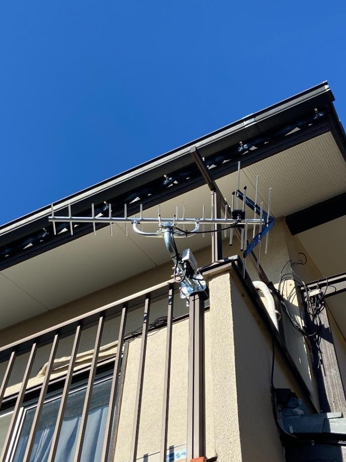 その昔、八木秀次博士が発明した形状(魚の骨のような形状)からマイナーチェンジを繰り返し洗練されたフォルムとなり、中・弱電界エリアにも対応可能な安心のDXアンテナ社製。UHF20素子アンテナの性能で、吹きさらしで障害物の少ない屋根上に設置することが多いため利得が高くなっております。万が一、壁面や屋内でデザインアンテナを取り付けられない物件 にも最適。従来の鉄製の太いワイヤーとは異なり、ステンレス製の丈夫で錆びにくいワイヤー(支線)を採用。アンテナマストから屋根の四隅に向けて4本の支線を張り巡らせ、さらに張り巡らせた支線の途中からも屋根馬に向けて4本の支線をバランスよく張り、合計8本の支線で頑丈に設置しております。サイズは51.8cm×34cm×101.4cmとなっており、VHF(アナログアンテナ)と比較して、大幅なサイズダウンと軽量化がなされています。しかも耐風速(破壊風速)50m/s。地デジ放送が始まる前の時代より、屋根上に設置するアンテナは災害に強くなっていると言えるでしょう。当店で人気ナンバー2の地デジアンテナでございます。