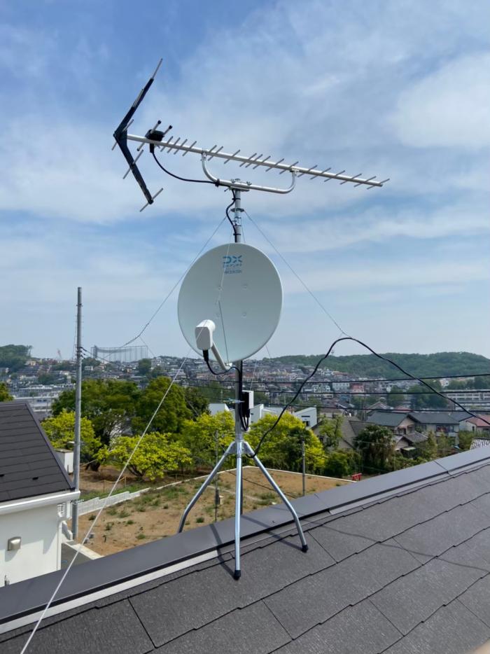 麻生区高石|UHFアンテナ+BS/CSアンテナ工事